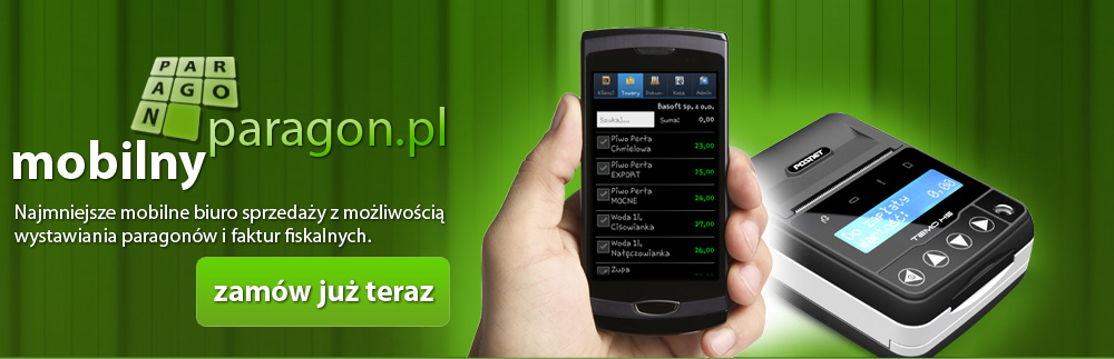 | Współpraca programu MobilnyParagon.pl z drukarką fiskalną POSNET TEMO HS EJ Bluetooth. Program MobilnyParagon.pl jest dedykowany do współpracy z drukarką fiskalną POSNET TEMO HS EJ Bluetooth. Dzięki łączności bezprzewodowej Bluetooth użytkownik jest w stanie bez żadnych kabli wydrukować paragon fiskalny lub fakturę bezpośrednio ze swojego telefonu wyposażonego w nowoczesny system operacyjny Android. Program na Twoim telefonie pozwala na wprowadzanie klientów, edycję towarów i wydruk paragonów fiskalnych oraz faktur. Zestaw ten stanowi najmniejsze biuro handlowe z możliwością wystawiania paragonów fiskalnych!